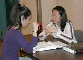 The idea behind the Algebra Table was to have the actual instructors available in DSH throughout the day to help any and all students taking math 120 and math 121. Given that the Table is right at the place where most of our classes are offered, a student can stop by for a few minutes between classes with a quick question, or spend as much time as he/she needs working on their homework with one of the instructors. Students have found this service very convenient and helpful, and the number of people attending office hours since its inception has greatly increased.